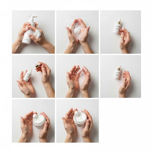 피부 관리의 기본인 클렌징 과정을 보여주는 이미지입니다.