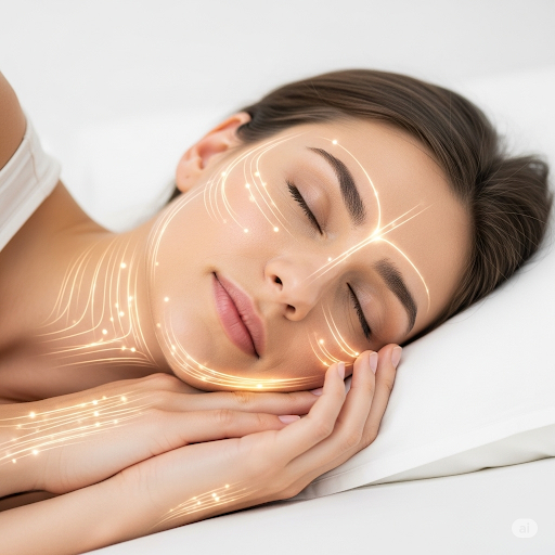 잠자는 동안의 피부 관리가 얼마나 중요한지 보여주는 이미지입니다.