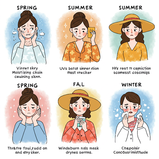 환절기에는 날씨 변화가 급격하게 일어나면서 피부가 적응하기 어려워집니다. 특히 **온도 변화, 습도 감소, 미세먼지 증가** 등으로 인해 피부 장벽이 약해지고 다양한 피부 문제가 발생할 수 있습니다.