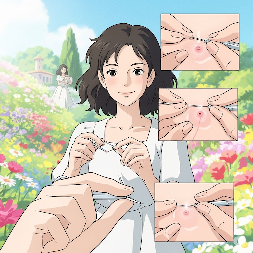 자, 이제 본격적으로 여드름을 짜는 방법을 알아볼까요? 절대 무리하게 힘을 주면 안 돼요! 살살 조심스럽게 압출하는 것이 흉터를 예방하는 가장 중요한 포인트랍니다!