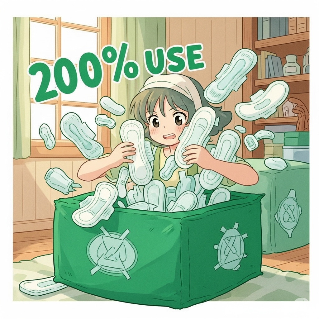 - ✅ 핵심 용도: **생리혈의 완전한 흡수 및 샘 방지**가 최우선 목표입니다. 생리 기간 동안의 필수품이죠.